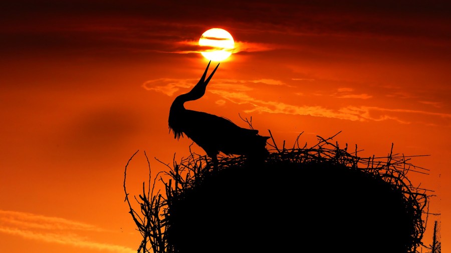 Ya se podía distinguir el punto naranja que marcaba en el horizonte por dónde saldría el sol. La niña se movía despacio, con cautela, descubriendo los árboles y arbustos que la rodeaban. Pudo desayunar unos higos que le regaló una higuera cercana. Mientras masticaba escuchó un batir de alas. Pensó que sería el búho, pero una elegante cigüeña se acercó volando hacia el nido en el que ella había despertado. Misterio resuelto. Era el nido de aquella enorme ave zancuda. El pico de la señora cigüeña empezó a castañear y la niña estaba segura que le intentaba decir algo: “¡cla cla cla cla!” y con un movimiento de cabeza el inmenso pájaro le indicó que se alejara por un sendero que surgía a su izquierda.
